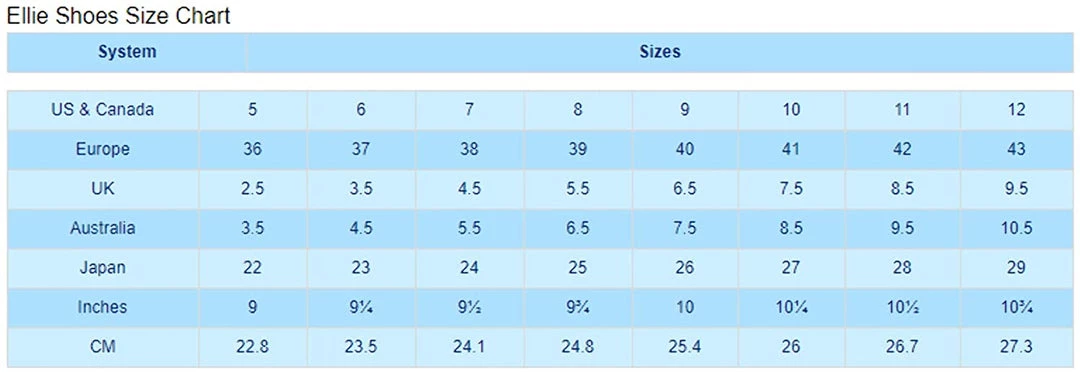 | Size | 5, 6, 7, 8, 9, 10, 11, 12 |