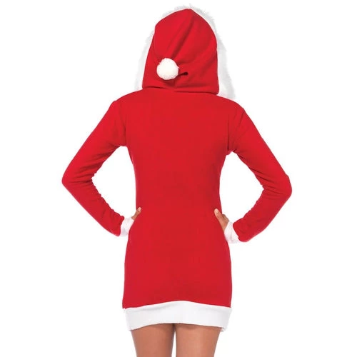 Have you been naughty or nice? The Cozy Santa Costume by Leg Avenue is the perfect holiday mix of sexy and sweet! This adorable fleece Christmas dress features a zipper front with attached Santa belt and fur-trimmed hood. Zip down for a little cleavage action or zip up to stay warm, this hoodie dress is ready for some mistletoe action.