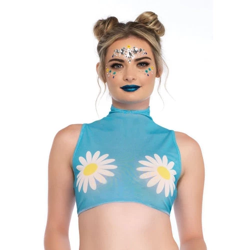 Let’s go to Woodstock! Get ready for your summer of hippie lovin’ with the Daisy Hippie Mesh Crop Top by Leg Avenue. Adorned with iconic daisies in sweet baby blue, you’re sure to fall in love with this sexy crop top! Perfect as part of a women’s Halloween costume, festival outfit, or for when you’re just feeling the need to spread that peace and love!
