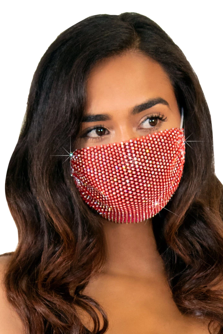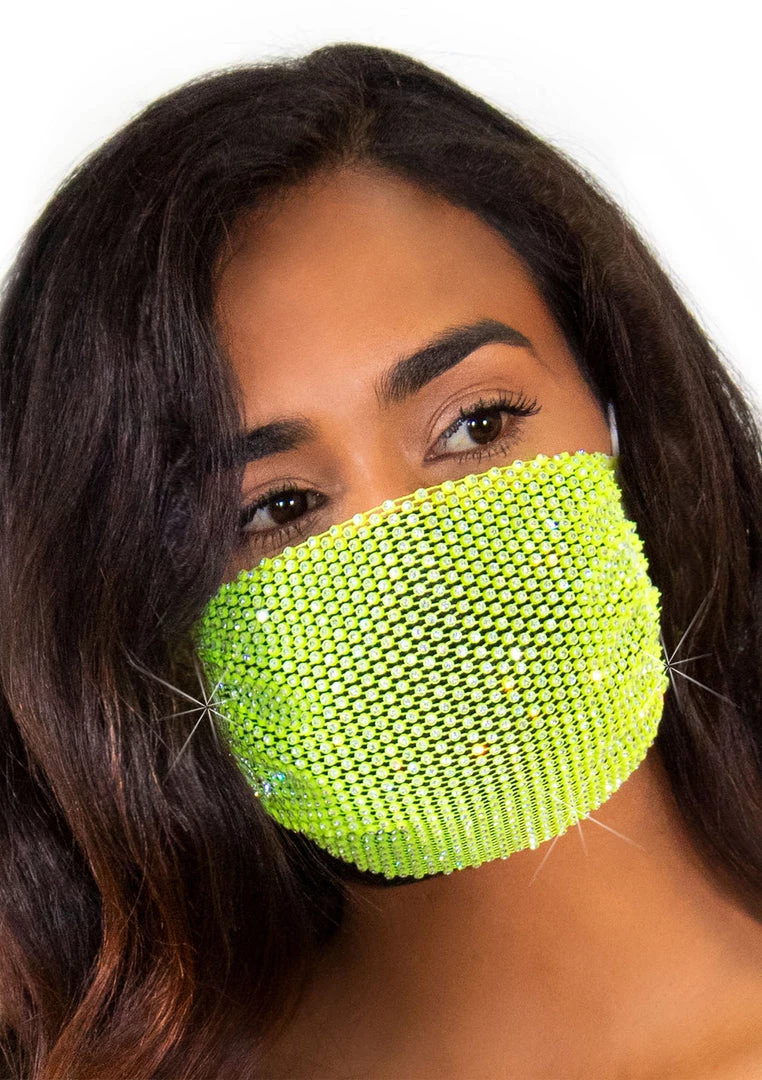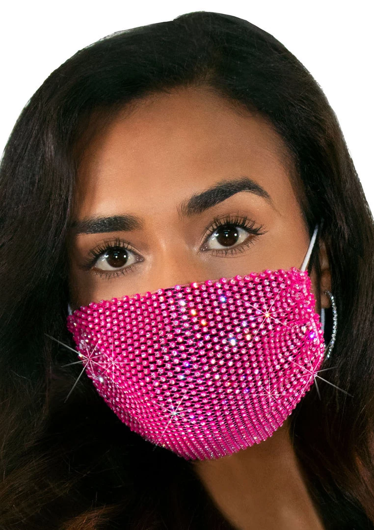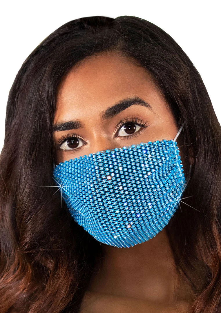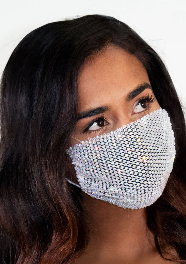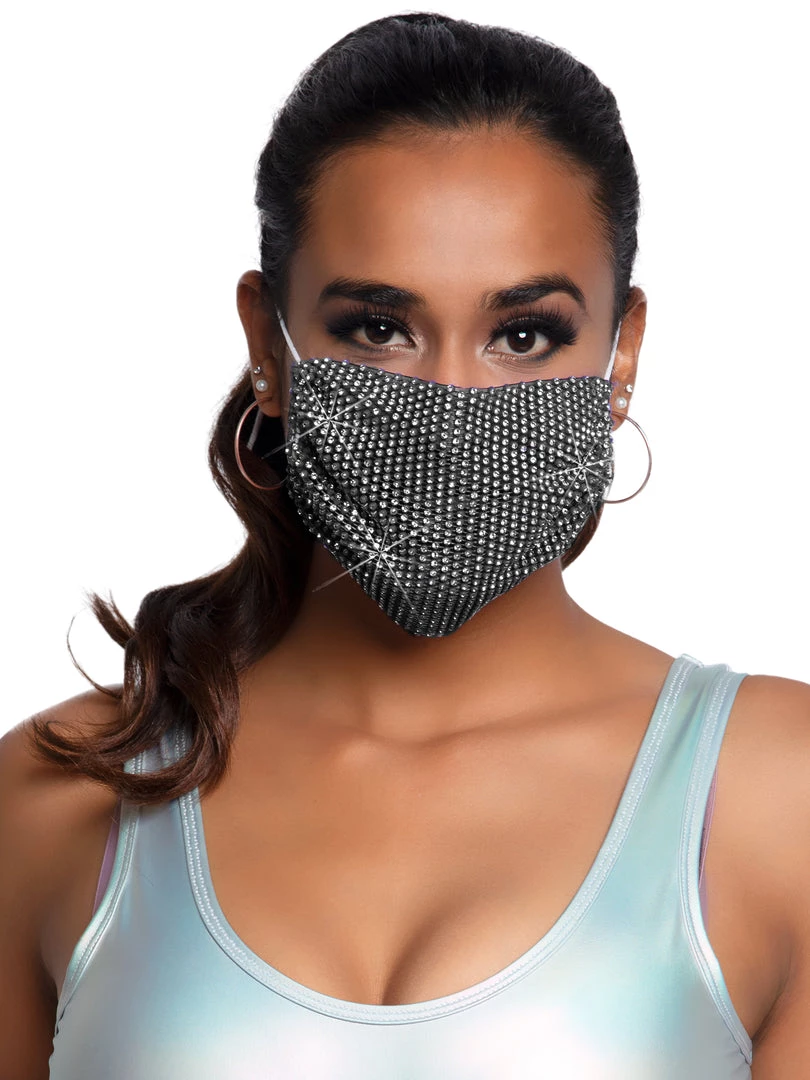Stand out in the crowd with this gorgeous fashionable face mask, featuring iridescent rhinestones for an unforgettable look at the club, festival, rave, or paired with everyday looks.