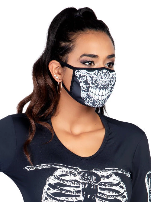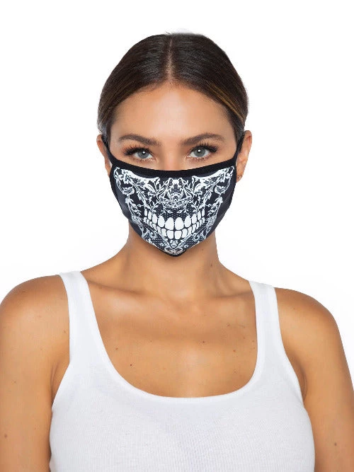 - FIT & STYLE: This lace print skull Halloween face mask features adjustable ear straps for ultra comfort and acts as a protective face mask for everyday wear or as festival wear and rave gear.
