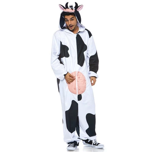 Whether you’re hanging out with your herd or just your favorite cowgirl, you’ll be ultra comfortable in the Moooo Cow men’s costume onesie by Leg Avenue. This funny Halloween costume features a zipper front fleece jumpsuit with udders (duh!) and a cow face hood.