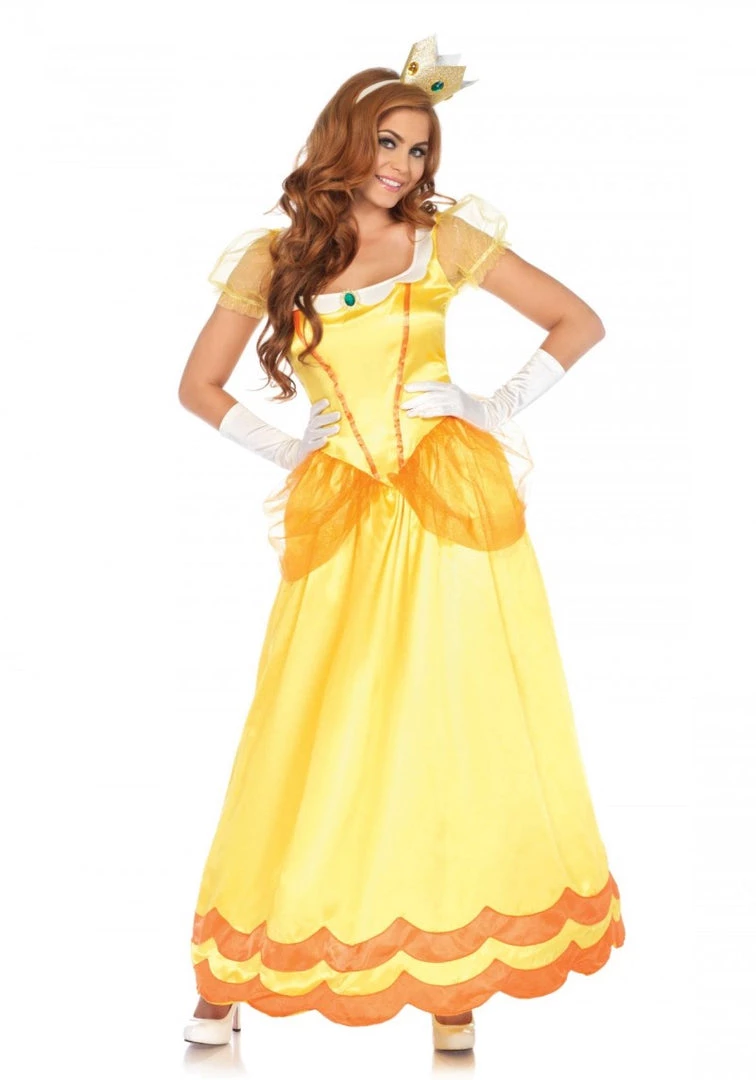 You’ll be ready for a race down rainbow road in the 2 PC Sunflower Princess Costume by Leg Avenue. The daisy darling womens Halloween costume includes a long satin gown with iridescent glitter tulle pannier accents and matching crown headband. (Gloves not included)