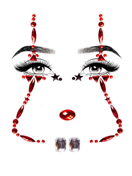 The Clown adhesive face jewels sticker is the perfect way to take your DIY Pennywise costume from spooky to spooktacular! Stick on adhesive face jewelry and body jewelry feature gorgeous high quality rhinestone and metal jems for all day spakle and shine. Perfect for halloween, themes parties, or any dress-up or costume event. Skin-friendly and easy to use.