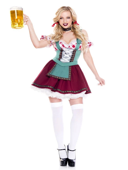 3 PC. includes: Red checker off the shoulder sleeves dress, embroidered choker, and hair ties