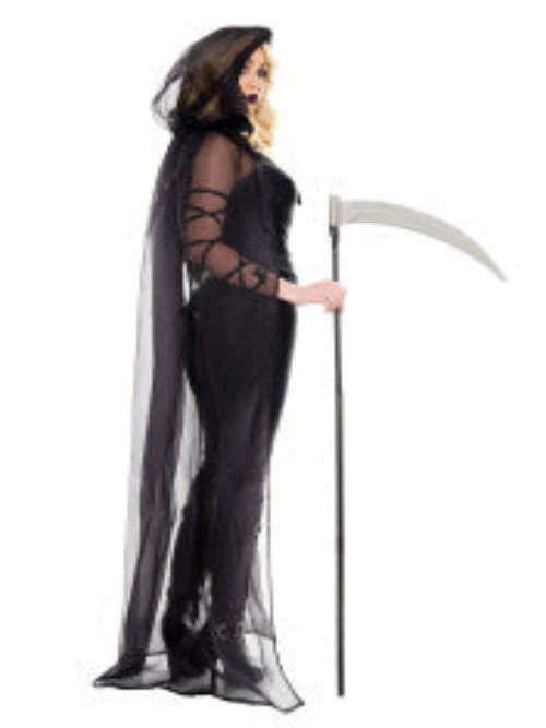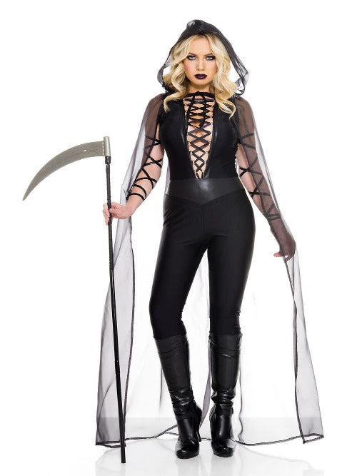 3PC. Haunting Ghost Includes: lace up provocative jumpsuit, sheer long cape and arm wraps