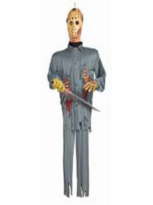 - Life size 6-foot hanging prop decoration of horror’s most feared masked man, Jason Voorhees
