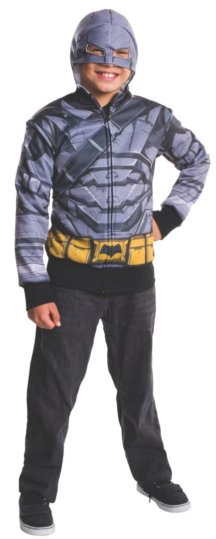his officially licensed Batman v Superman Dawn of Justice hoodie will have you fighting all sorts of bad (and good) guys! If there is even a 1% chance that you think Superman is the enemy, then you have to take it and join Batman. Hoodie hood hangs over the head just like Batman’s helmet and is designed after Batman’s new Armor suit. This is great on its own, but could be even better with the other costumes and accessories available in our store!