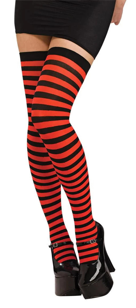 Rubies Net & Lace Thigh Highs Women’s Red/Black Striped Thigh High’s