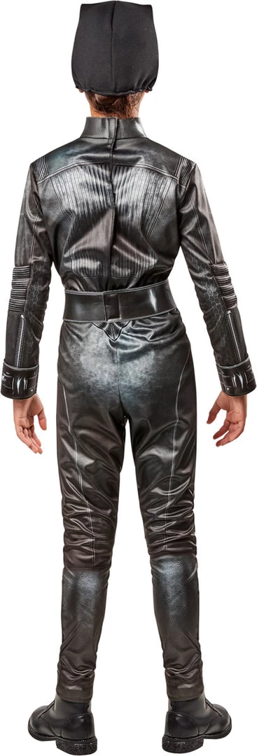 Let your kid test their stealth and cat-like reflexes as the infamous Catwoman! In DC Comics latest adaptation, The Batman, Selina Kyle aka Catwoman, teams up with the Caped Crusader. Often depicted as one of Gothams anti-heroines, Catwoman may have a questionable moral compass but ultimately is guided by good intentions. Now your child can help Batman take down the dangerous Riddler in this Officially Licensed Selina Kyle Costume! This costume features Catwomans black jumpsuit that has printed buckle and zipper details with an easy back closure. The jumpsuit has a leather-like look and padded elbow and knee details. The included mask is a 3/4 black overhead mask with subtle cat ears. In this costume, your child will be the purr-fect Catwoman!